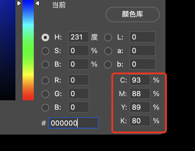 - RGB拾色器 displays 0-255 values; CMYK uses 0-100% ink percentages.