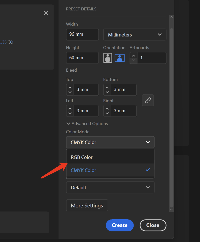 Next, look at the size settings. On the “Preset Details” panel on the right side of the new document dialog box, you can change the size freely: